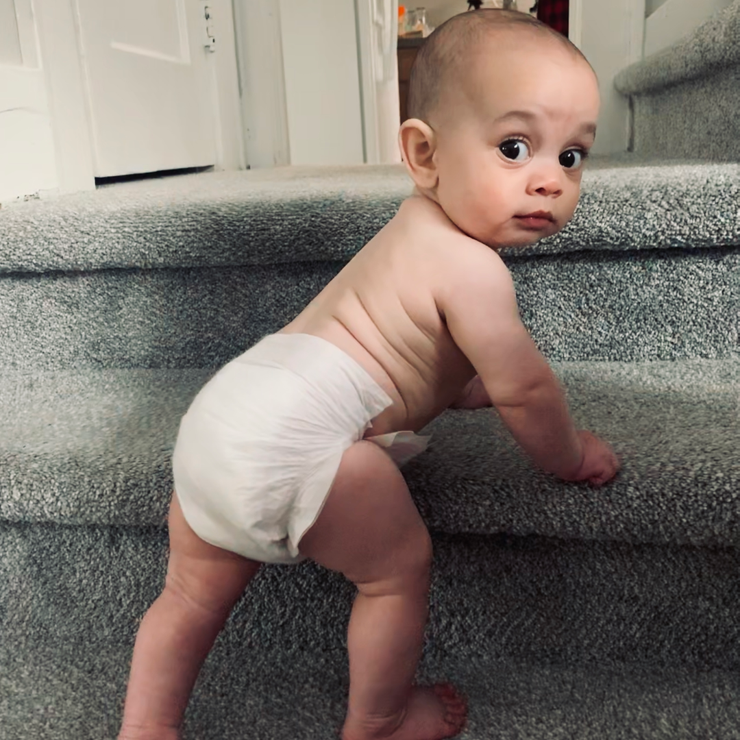 Here’s the thing, I know stairs are scary. Most of us want to put up the baby gate & ignore them until we absolutely have to address it – but I promise, you will feel so much better if you start teaching your kids stair safety as early as possible. We can be as diligent as possible, and things happen. An older sibling leaves the gate open, they’re shaking the gate and it falls, they go somewhere that there isn’t a gate. Your piece of mind knowing they have some basic safety skills is worth the nerves of facing stairs head on & teaching them young.