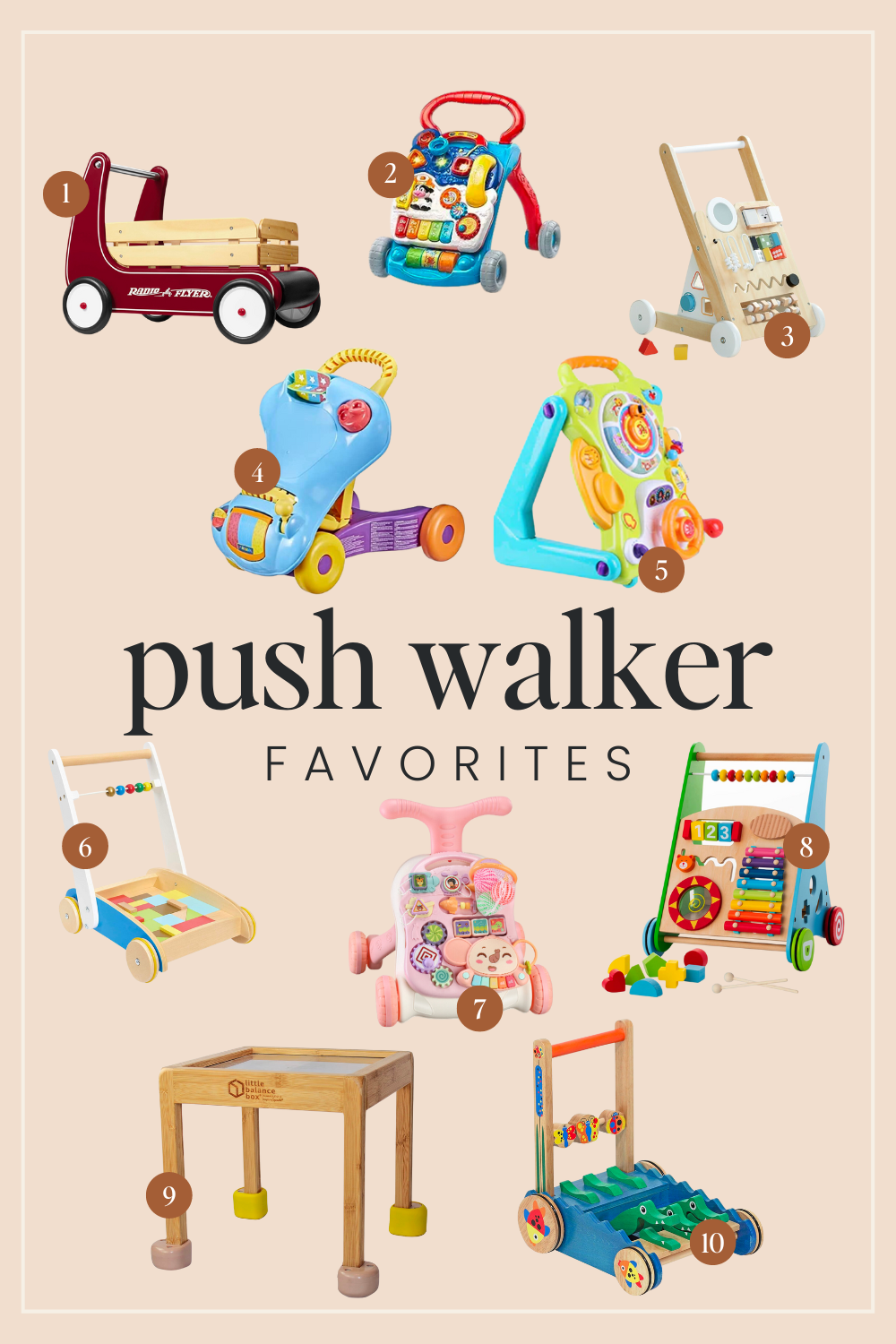 1. Radio Flyer Classic Walker Wagon | 2. VTech Sit-To-Stand Learning Walker | 3. Pottery Barn Kids Activity Walker | 4. Playskool Activity Push Walker | 5. iPlay Baby Push Walker & Activity Center | 6. Early Learning Centre Push Walker | 7. Haweek Baby Push Walker | 8. Kiddery Wooden Push Walker 9. Little Balance Box Push Walker Toy | 10. Melissa & Doug Push Toy