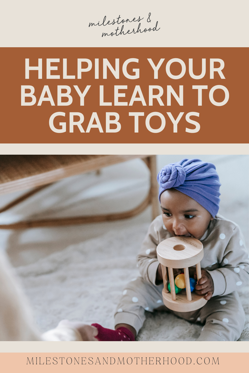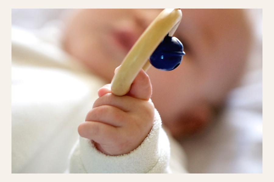 “How can I help my baby learn to grab something? He’s just hitting things now & getting frustrated (2 months old).”