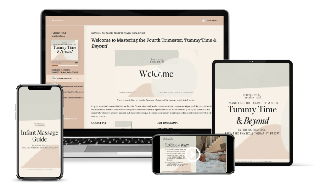 To keep this brief (but be sure to check out my Tummy Time Course HERE) – tummy time is truly what lays the foundation for all the higher level, more complex milestones to come.