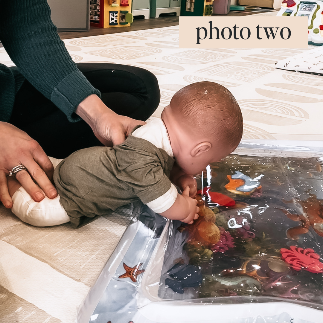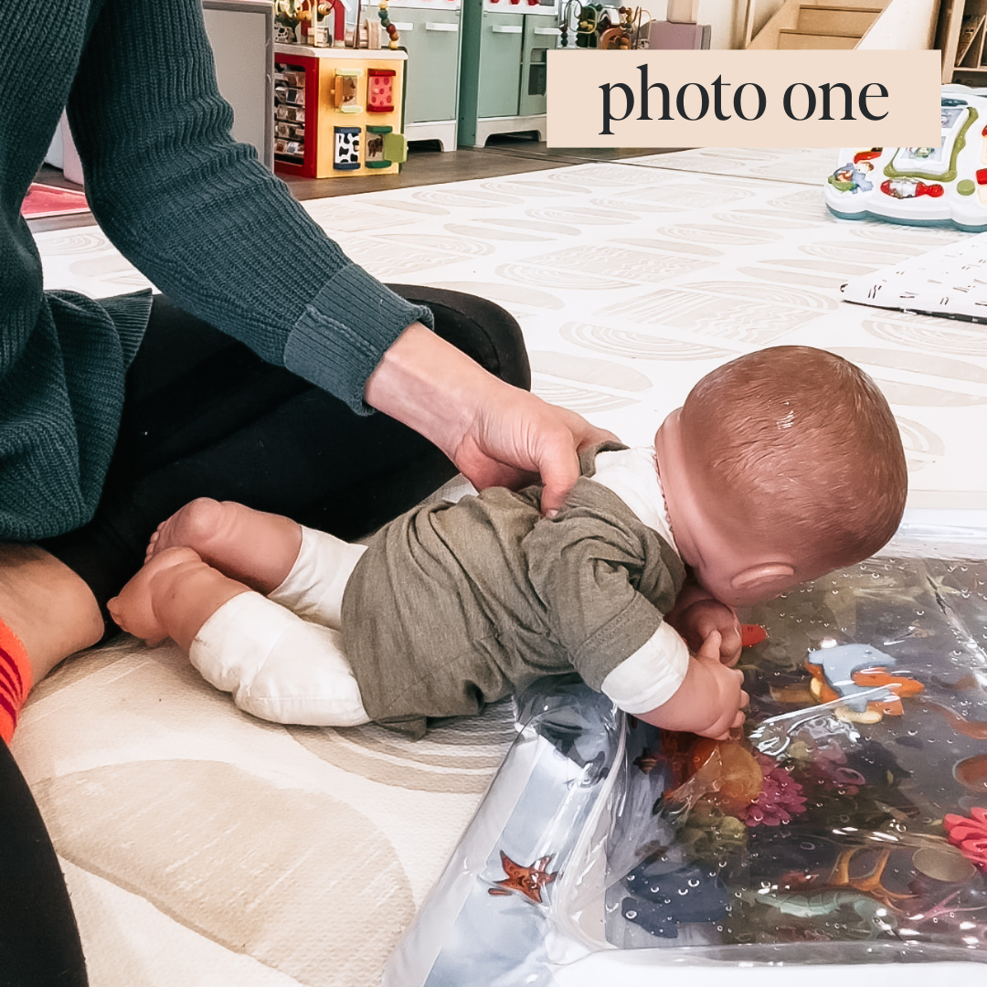 DISCLAIMER: Never leave your baby or child unattended while using the tummy time water mat or practicing any of the activities below.