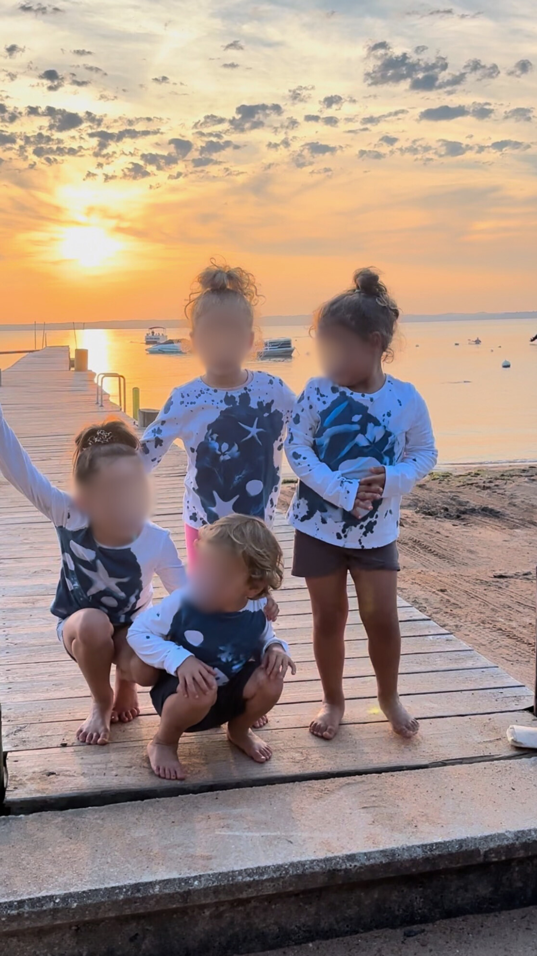 We made cyanotype shirts DIY from start to finish with the kids, which was a long process but truly, we had so much fun at every single stage of it. From prepping the solution, creating our background design, pulling together our very own ‘darkroom’ (aka a bathroom with no windows ), hunting for beautiful items to use on the beach, and each child designing their very own shirt to remember the trip with- it was seriously SO special and so fun. 11/10 recommend for a relatively inexpensive but SO meaningful souvenir