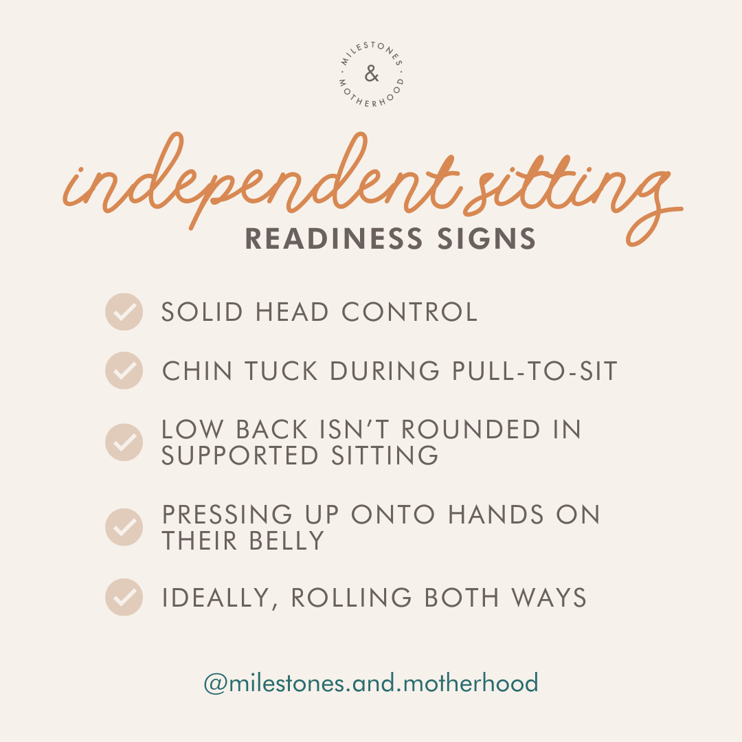 When it comes to sitting, I completely understand it is an exciting milestone! It can also be one of the first fairly stressful ones as baby learns to control their body without falling to the sides, front, or flinging backwards. Learning the readiness signs will hopefully help you feel more ready and prepared to navigate this stage and support your baby in a way that works for them.