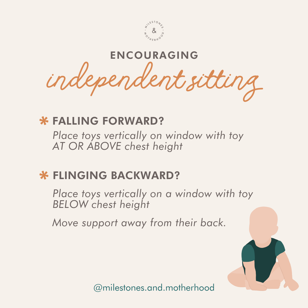 If your baby is physically ready to start practicing sitting (refer to the signs of readiness above), but every time they are sitting they fling back or fall forward, here are some tips to help!