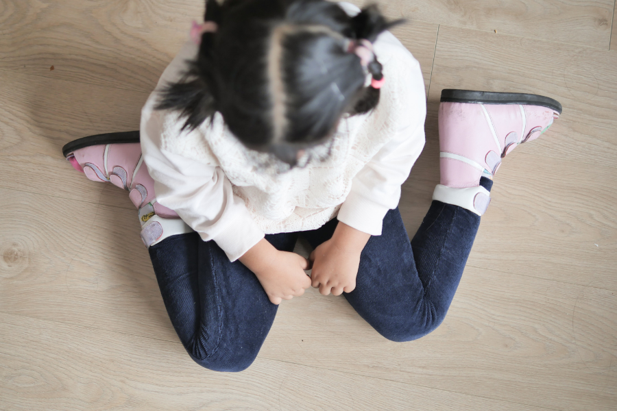 W-Sitting refers to the leg position a child makes while seated on the floor involving the legs being in a ‘w’ position if you’re looking at them from a top down angle, with their bottoms resting on the floor, like the image here.