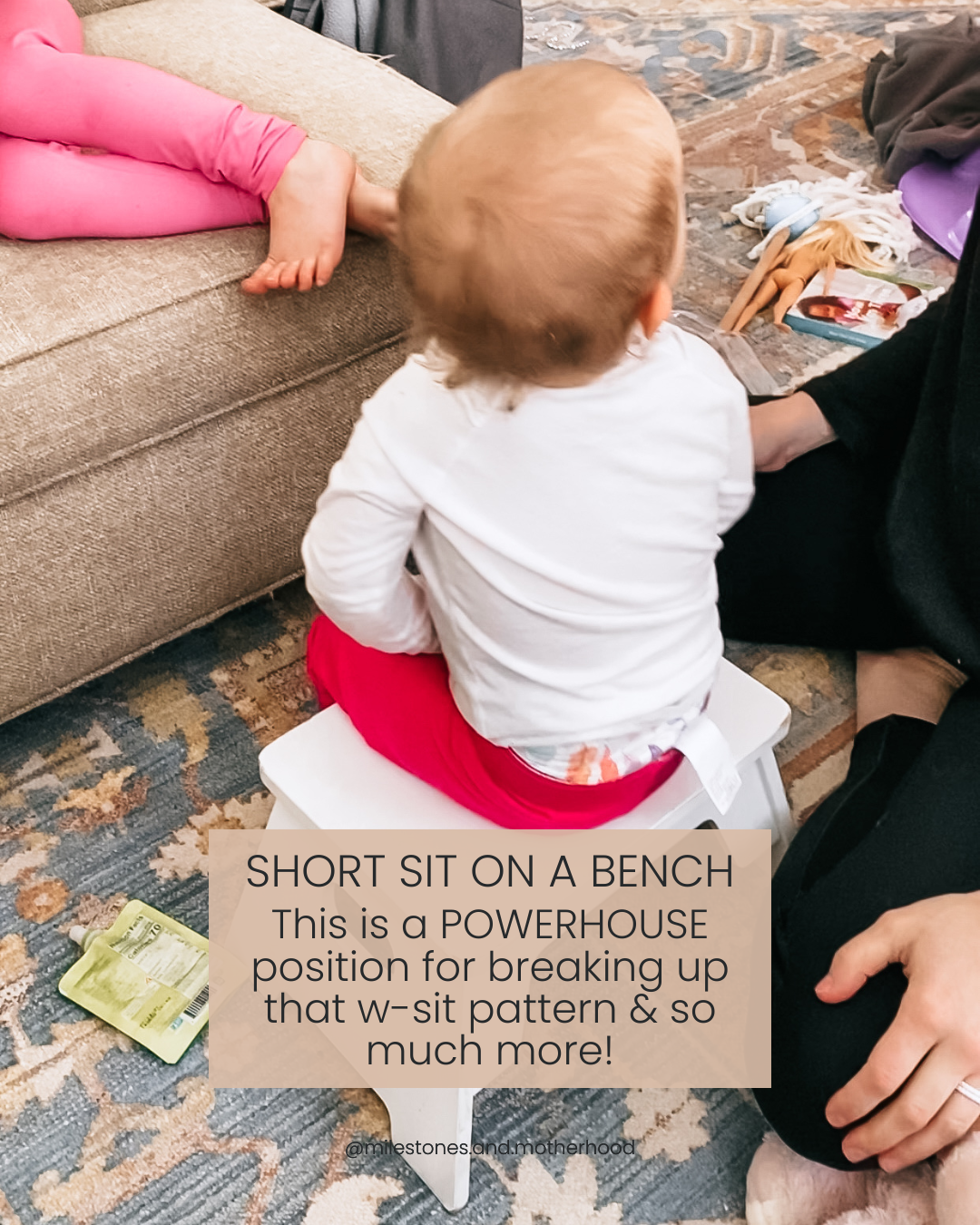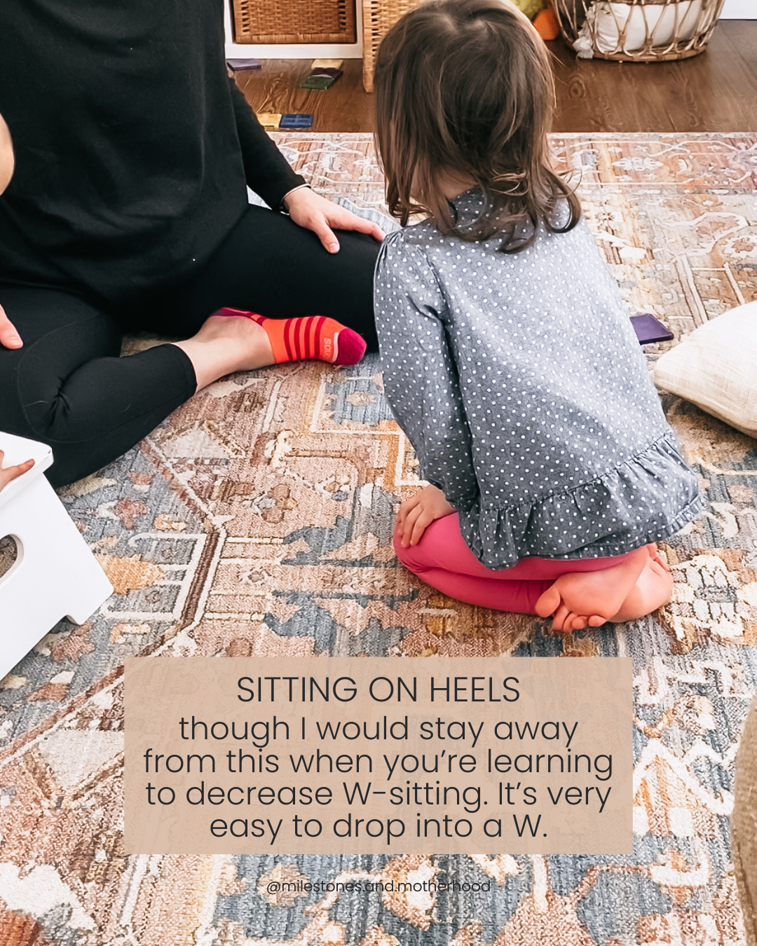 Z-sitting, also known as a side sit (shown above), as compared to W-sitting, is actually a POWERHOUSE position for posture, strengthening, range of motion, mobility & transitions & SO much more!
